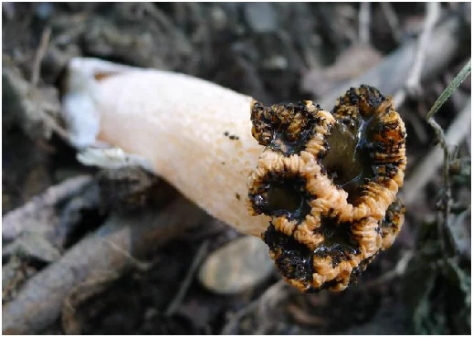 2022年11月27日消息,在重庆武陵山国家森林公园首次发现并采集到野签盛辨生白鬼笔。