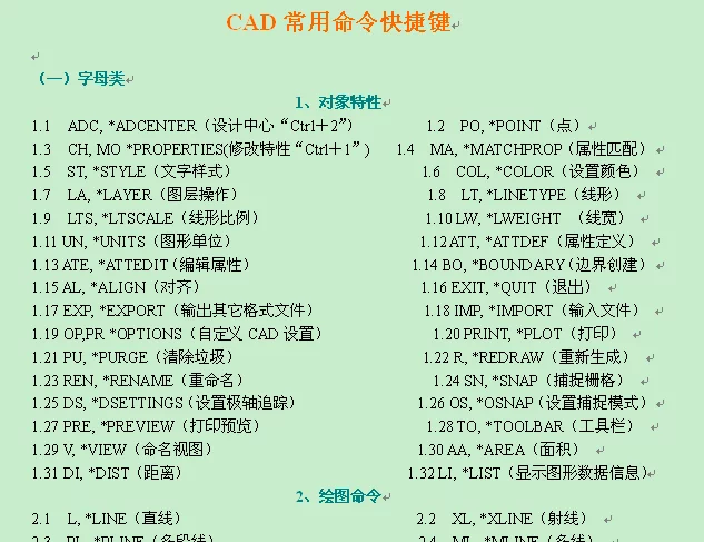 在CAD软件操作中,为使用者方便,于在Windows中工作缺笔字时一样,利用快捷键代替鼠标。可以利用键盘快捷键发出命令,完成绘图,修改,保存等操作。这些命令键就是CAD命令。