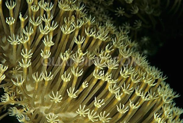 群体生活的珊瑚虫,它们的骨架联在一起,肠腔也通过