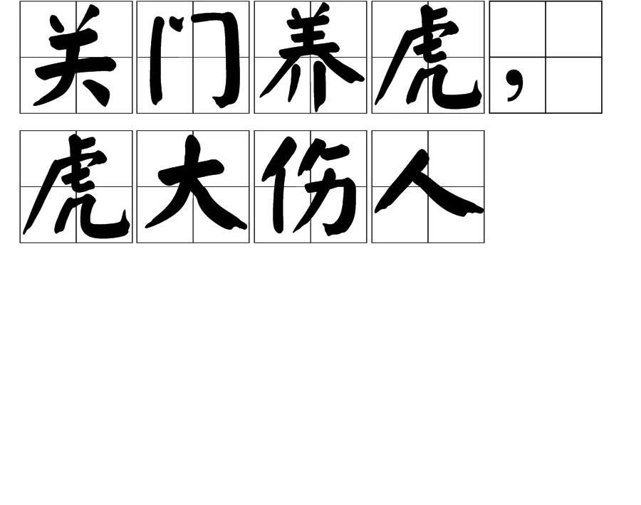 清·钱彩《说岳全传》第四十回:"古人说的'关门养虎,虎大伤人'。这个东西,如何养得熟的。"