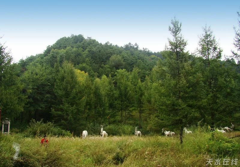 又名牧马滩,坐落于小陇山林区,是秦岭山脉中部的一处开阔地,因传说秦始皇先祖赢非子在此地为周王室牧马而得名。这里水草丰美、碧野连天,西边不远处的礼县盐官镇就是当年秦人最早的都城--西犬丘,自古就是放养良马的好地方,至今这里还留有马耳尖山、马驼峰、马山梁、马驼峰、驻骖廊等许多古奥的地名。天水《秦州志》载:"秦州东南一百里,四道岭有秦嬴非子繁息战马故址。"传说当年秦人的祖先大骆和他的儿子非子看到这里依山傍水,丰地沃野,是一块绿草如茵的富饶之地,极有利于畜牧业的发展,于是就在此牧马养畜,繁衍生息。非子善于养马,得到周孝王的赏识让他继承了舜时祖先伯益的"嬴"姓,号称秦嬴。并封"秦地"作为周朝附庸,为周养马。以后发展壮大,终于统一中国。