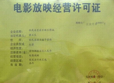 - 中文名称 电影放映许可证