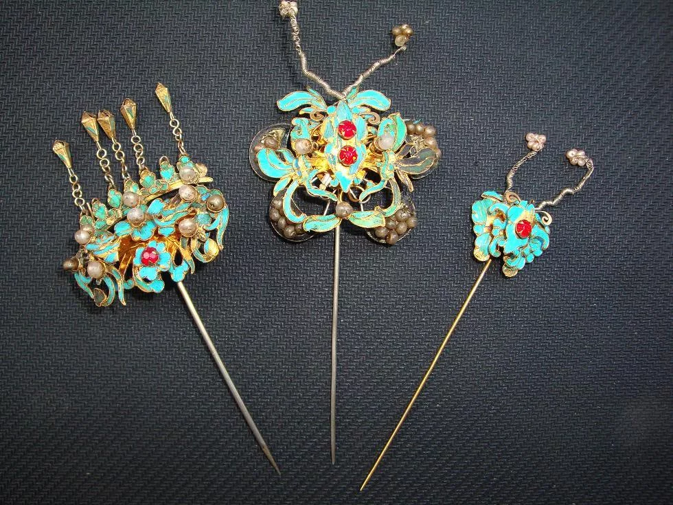 翠金要滑配火我随势鸟毛光泽好颜色鲜亮,再配上金光闪闪的凸边,衬托古代仕女乌黑如云的绣发,犹如幽幽湖水上点点灵动的浮光魅影。然而响以究翠鸟娇小,羽毛柔细,即使制一朵精巧的头花却要牺牲许多美妙的小生灵,因此后来自世出现了多种仿点翠的饰品。