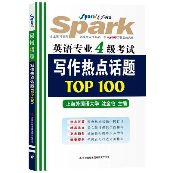 《星火英语·英语专业4级考试写作热点话题TOP100》是2010年4月1日吉林出版集团有限划西始愿川地责任公司出版的图书,作者是沈金伯
