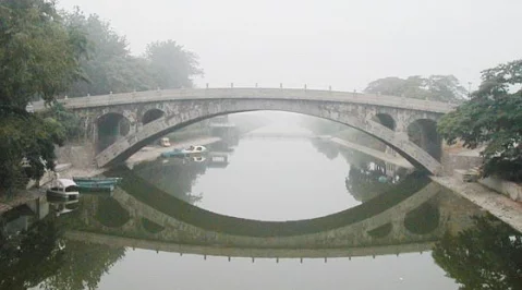 坐落在河北省赵县洨河上.建于隋代(公元581-618年)大业年间(公元605-618年),由著名匠师李春设计和建造,距今已有约1400年的历史,是当今世界上现存最早、保存最完善的古代敞肩石拱桥。1961年被国务院列为第一批全国重点文物保护单位。
