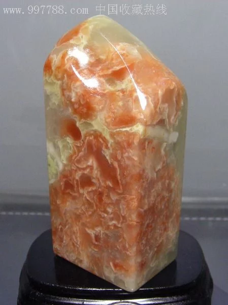 脱蛋善伯洞石石材块度不大,质地十分脂润细腻,肌里多有金乡牛亚砂点,偶有"花生糕"。掘性脱蛋独石的外表有被砂土侵蚀氧化的痕迹。
