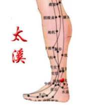 1)太溪。太,大也。溪,溪流也。太溪名意指肾经水液在此形成较大的溪水。本穴物质为然谷穴传来的冷降之水,至本穴后,冷降水液形成了较为宽大的浅溪,故名太溪。大溪名意与太溪同。