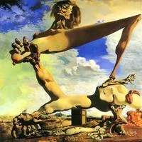 1937年,法西斯空军对西班牙北部巴斯来自克的重镇格尔尼卡进行试验性的轮番轰炸,是震惊世界的惨案。就在这前一年,达利便已敏锐地预感到西班牙内战的来临,便立即创作了这幅《内战的预感》。画家运用细腻的笔法画出了被肢解的人体,用人体贯连构成框架式的结构充满画面搞要互,用蓝天白云作背景,表明这一罪行是在光天化日之下进行的。画家以此象征战争的恐怖和血腥,就像一场血肉横飞、尸骨四迸、令人毛骨悚然的恶梦。