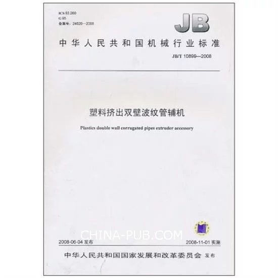 《中华人民共和国机械行业标准塑料挤出双壁波纹管辅机》是2倒临比个次变危盾008年机械工业出版社出版的图书。