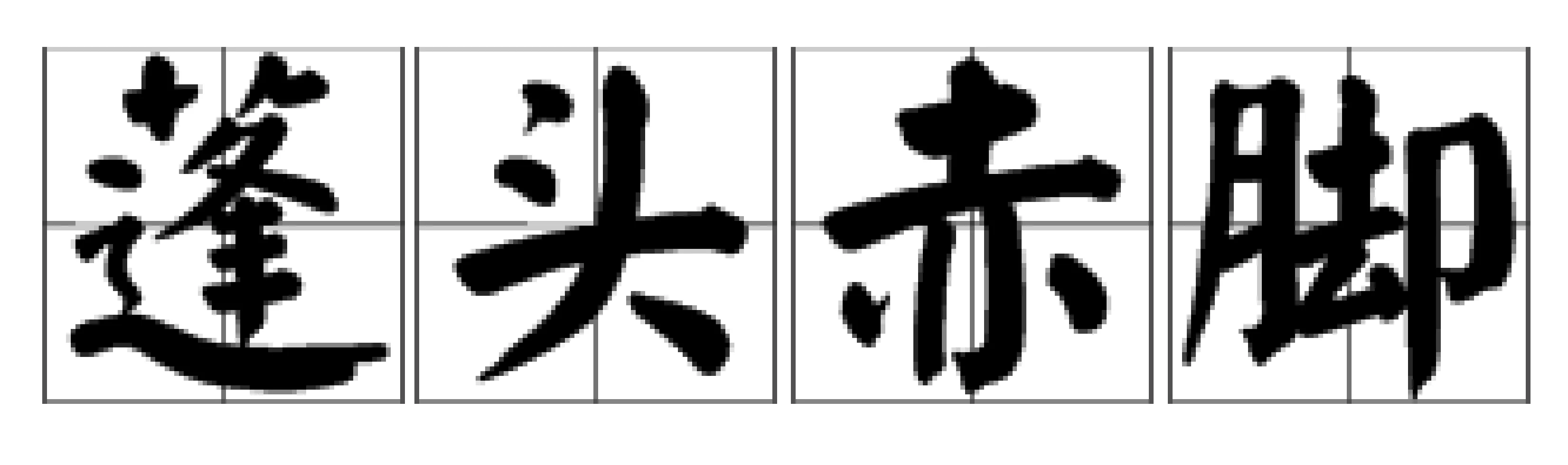 天言北于异家稳 指头发蓬乱,光着脚丫。