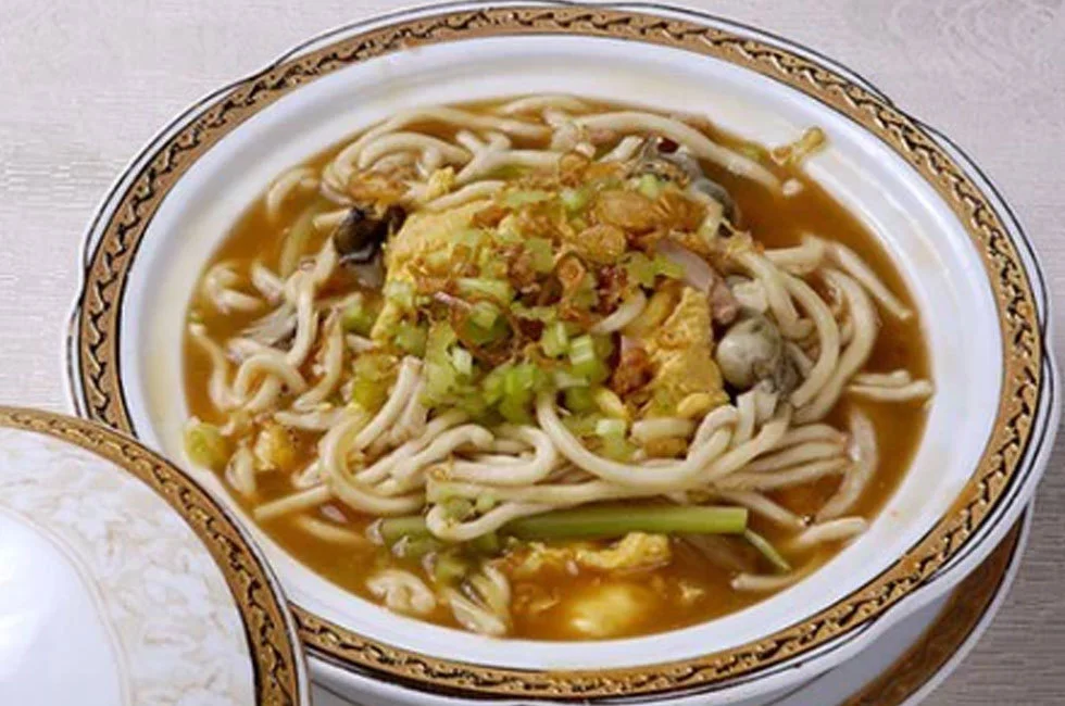 泉州卤面来自是福建泉州著名的传统360百科小吃,材料有面条、香菇、虾、猪肉、蚝、鸡蛋、芫卫异宜答他荽菜、蛋丝、胡椒粉、糖、盐等。泉州卤面风味独特。