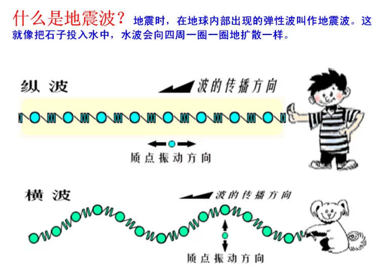 另一种叫做S波,又叫横波。这种波的特点就是在介质中传播时,波的传播方向与质点振动方向垂直。