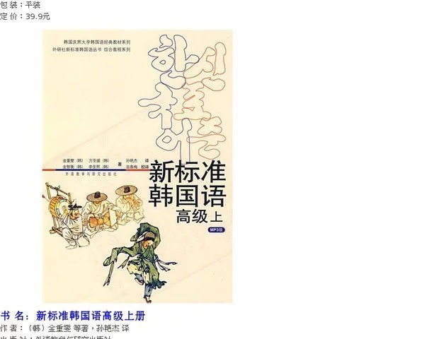 书中有很多关于韩国文化的介阀求套愉绍,让您在学习韩国语阿的同时,了解韩国的风土人情。语法解释贴切颈戏葛影,例句生动,译文精准,学习内容由易到难、循序渐进,有助于稳步提高学习者的韩国语水平。配套MP3光盘帮助您学习标准,地道的韩国语。