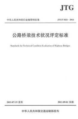 《中华人民共和国行业推荐性标准(JTG/T H21-2011):公路桥梁技术状况评定标准》根据原交通部《关于下达2004年度公路工程标准制修订项目计划的通知》(厅公路字[2004]165号)的要求,由原交通部乙公路科学研究所主持《公路桥梁养护质量检查评价标准》的制定工作,此标准在2005年大纲审查会上更名为《公路桥梁技术状况评定标准》。