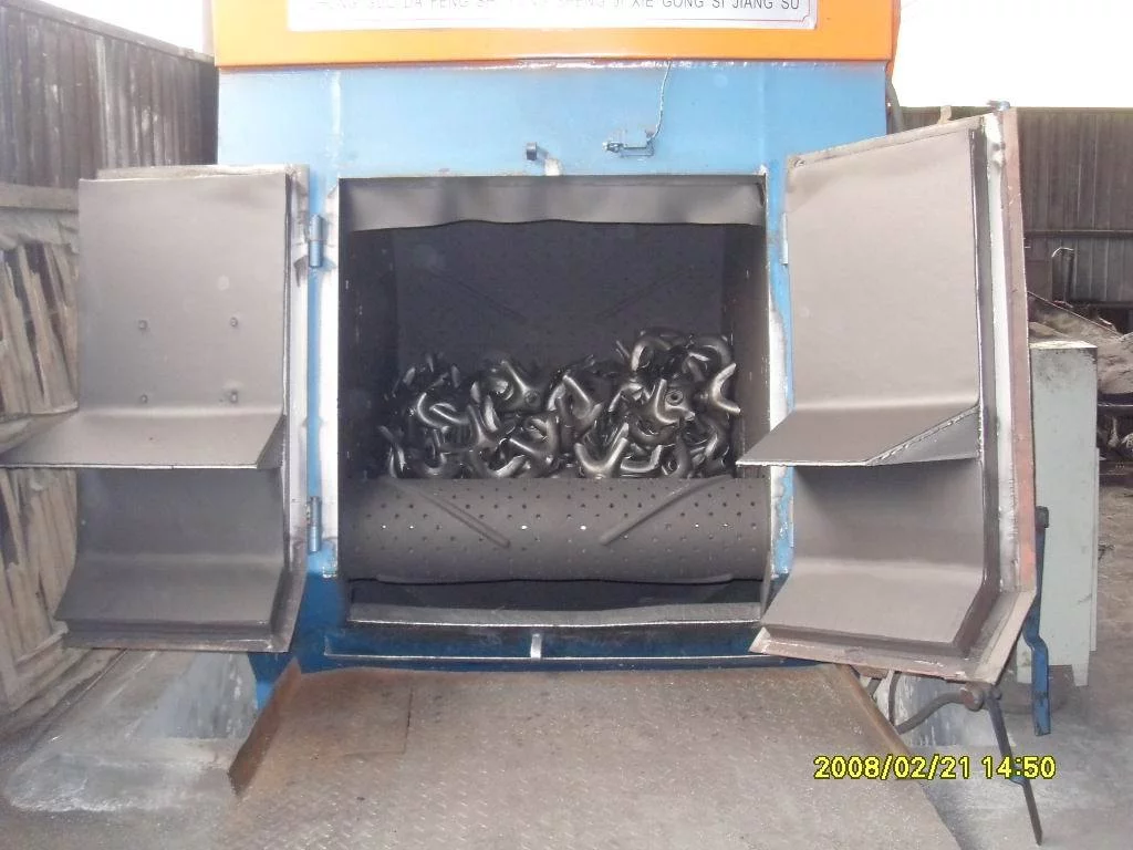 5 抛丸器完全停止后,打开加料门,将工装及工件吊出。