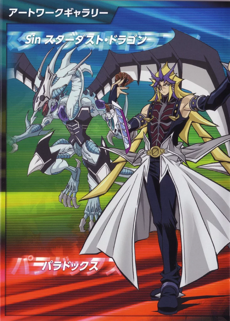 登场于2010年《游戏王5D's》剧场版《超融将概亮精合!超越时空的羁绊》,帕拉多克斯所使用的怪兽之一。帕拉多克斯在自己的第三个回合终于召唤出「罪 星尘龙」,并用「罪平行齿轮」和「罪 星尘龙」作为同调素材,同调召唤出「罪矛盾龙」。