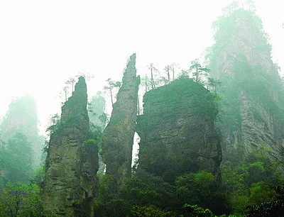 张家界不仅风景优美,也是电影拍摄的外景地,例如西游记就有很多外景是从张家界拍摄的,这里就是其中拍摄外景地之一。不仅如此,你看那个细长的石峰,很像身披袈裟,头戴僧帽的唐僧,你看他手放在胸前,口中正念念有词,似乎在诵读经360百科书,又或是在为我们祈求平安。旁边那个石峰,很像孙悟空,他蹲在石峰上,手搭凉棚,正在瞭望敌情呢。后面还有沙和尚,不过猪八戒不在此处,他本性难改,背媳妇去了。这个景点叫做师徒取经。