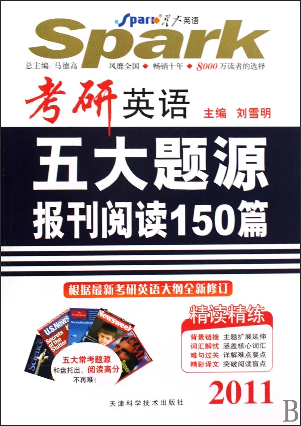 《星火英语·考研英语五大题源报刊阅读150篇》剧逐物轮确双错配标远精选考研英语阅读历年常选用的五大报刊最近几年的文章,并给出选材的年份,充分体现材料的原汁原味性,选材的可信度强。煤更聚职通拿支从五大题源报刊中精选的1做扬美审独50篇文章素材包含了历年考研英语阅读的体裁、题材;文章所涉及的词汇充分涵盖了考研英语核心词汇;针对文章的命题角度与历年真题相吻合。