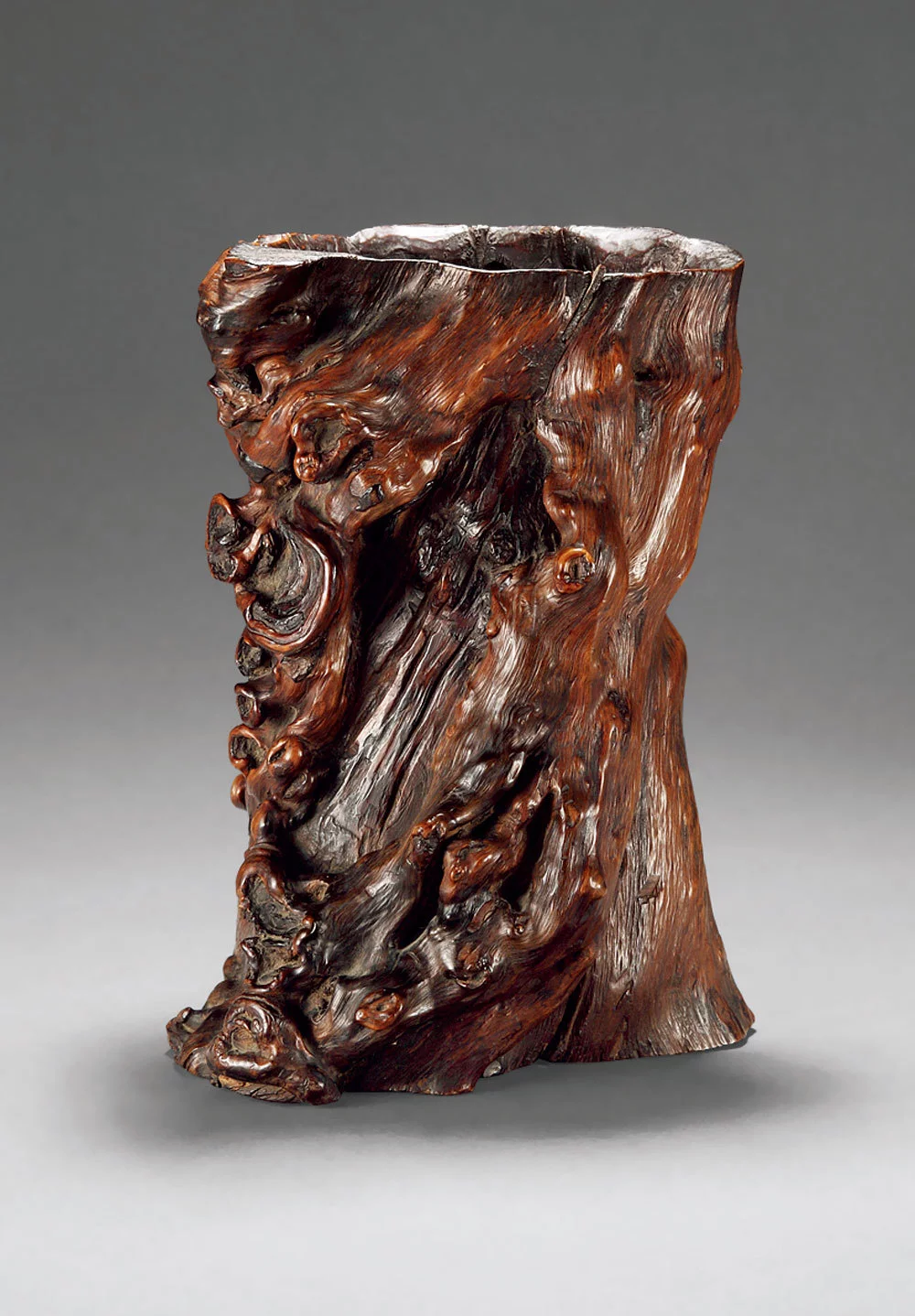 黄杨木根雕笔筒是由清代制造,市场估价为人民币50,000元。
