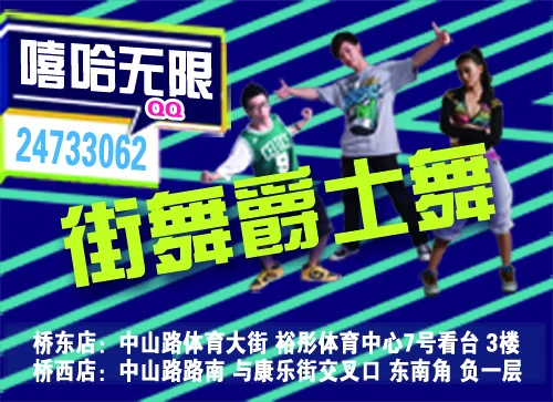 石家庄嘻哈无限街舞学校成立于2002年,省会唯一一家专业街舞培训基地。以街舞为重点的文化艺术培训基地。并在08年7月获得"河来自北省专业街舞培训基地"的称号。我校以"塑造健全人格,平凡超越自我"为办学理念,始终坚持"习舞先习德,以德律行,以行正德"为宗旨,致力于为广大街舞爱好者提供一360百科个正规,专业,充满文化气息,学习和交流的良好平台。
