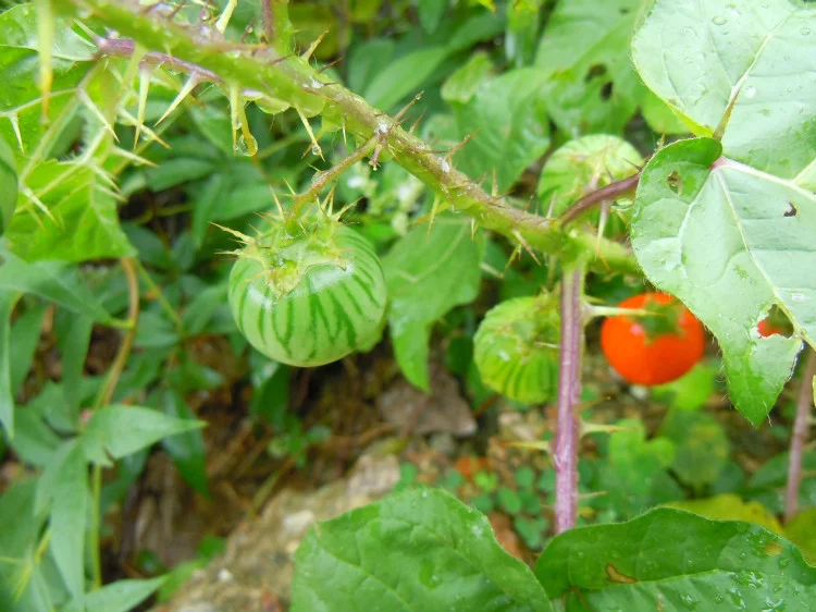 【来既一传板热真可制附司源】 为茄科植物丁茄Solanum surattense Burm.f.的全株。