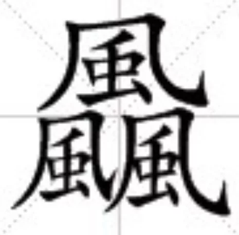 笔画数:27,部首:风,笔顺编号:3532512143532512转叫氧14353251214