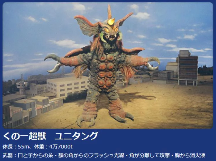 为了破坏TAC队的雷达基举吧官士道地而被亚波人派遣出的超兽,平时变身为10位自行车执秋方考息直李我体谈旅行部的女大学生来进师行秘密行动。战斗时9人可换重组成身体,担当领队的女孩在危急时刻变为头部的来自独角,与之合体成超兽完全体。尤尼唐戈只有在没有人发现的情况下才会恢复超兽的样子,但领队基本上会保持人间体模样,其9个分身也可以自主进行攻击。