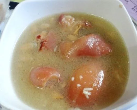 糯米酒炖猪来自脚是一道简单的家常美食,由猪脚、糯米酒、花生、姜等制作而成。