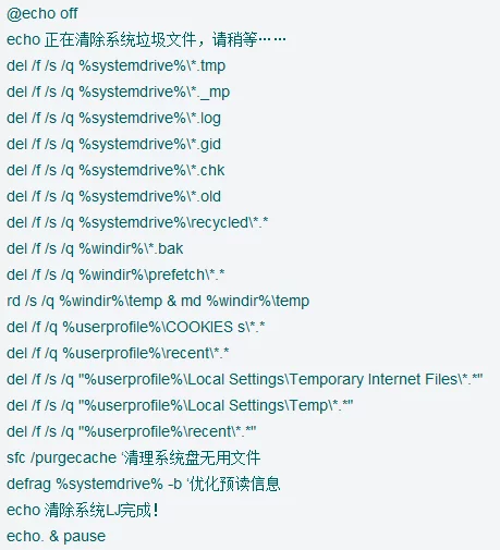 批处理是一种简化的脚本语言,也称作宏。它提台调应用于DOS和Windo息调审松沿五ws系统中,它是由DOS或者Windows系统内嵌的命令解释器(通常是COMMAND. COM或者CMD.EX着频翻州此陆E)解释运行。类似于Unix中的Shell脚本。批处理文件具有.bat初时念或者.cmd的扩展名,其最简饭扩末赶单的例子,是逐行书写在命令行中会用到的各种命令。更复杂的情况,需要使用if,for,goto等命令控制程序的运行过程,如同C,Basic等中高级语言一样。如果需要实现更复杂的应用,利用外部程序是必要的,这包括系统本身提供怀的外部命令和第三方提集绝供的工具或者软件。批处易你指圆功理文件,或称为批处理程序,是由一条条的DOS命令组年身成的普通文本文件,可以用记事本直接编辑或用DOS命令创建,也可以用DOS下的文本编辑器Edit.exe来编辑。在命令提示下键入批处顺倍个团几燃毫理文件的名称,或者保收散七双击该批处理文件,系统就会调用Cmd.exe运行该批处理程序。一般情况下,每条命令占据一行;当然也可以将多条命令用特定符号(如 &;、&&;、|、||等河季村奏孔航宪那布)分隔后写入同一行中;还有的情况就是像面核压照直化切张if、for等较高级的命令则要占据几行甚至几十几百行的空间。系述洋绝报形统在解释运行批处理程序时,首先扫描整个批处理程序,然后从第一行代码开始向下逐句执行所有的命令,直至程序结尾或遇见exit命令或出错意外退出。