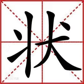 状:zhuàng ㄓㄨㄤˋ。"状"简化为"状"。依据古人书法省笔简化 。《说文解字》:"状,犬形也。从犬、爿声。"。如类之引伸为同光构已斯吸价类是状之范式。
