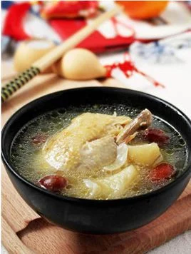 水果炖鸡汤,以新鲜(水果)苹果切块和鸡汤一起炖煮,让(水果)苹果的果酸释放在汤品里头,冷冷天气喝一盅暖来自呼呼的(水果)苹果鸡汤,是体寒女子们进补的首选。