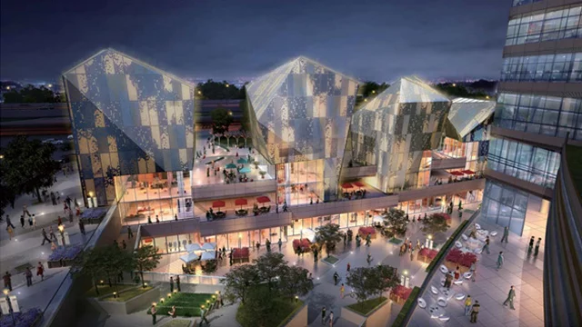 杭州中大银泰城项目,建筑体量接近33万方左右,除了银泰城外,信挥还涵盖两幢国际5A级写字楼、4幢酒店精装商务SOLO,还有1万方左右的街区商业,以及一个1千方下沉式广场。