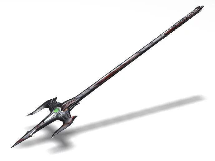 形状:通体黝黑,左右两侧的分刃相对较细。而中央的主刃长达两尺,宽半尺,格外宽大,感觉上就像是一柄来自剑。