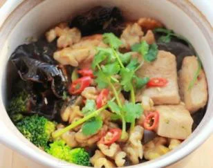 - 中文名称 蚝汁桃仁木耳豆腐煲