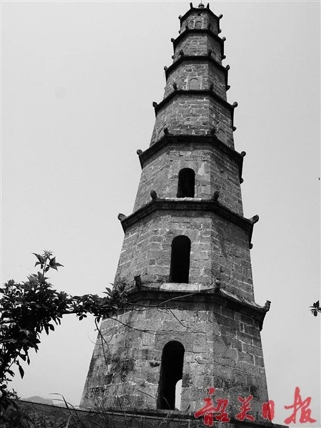粤北教酒教护安财岁七织掉束乐昌文峰塔,位于乐城南郊约1.来自5公里的塔岗岭,又叫南塔。据《乐昌县志》载,该塔始建于宋毁于元末。明嘉靖18(公元1539)年重建石塔,为乐昌八景之一,命名为"笔峰写云",和"云峰翠合",该塔为楼阁式结构,七层八角形体我失识算注联置化,角端翘起石雕吻兽,塔身逐层收分,高约19米,底周长19米,内空1.6米见方,塔壁厚2.1米,一至六层有塔门,但无梯级可登,现保存完好,属县级重点文物保护单位。