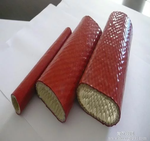 高温套管由玻纤和硅胶制成,质量的判别标准为外层胶质呈铁锈红色,颜色较深;整体弹性好,套管横向拉伸时可拉伸至1.3倍;内层玻纤为无碱玻纤,硫化后呈现偏黄色.