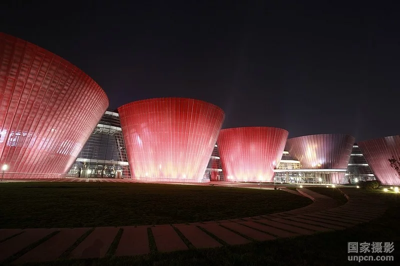 博物馆建筑方案由法国著名建筑师保罗安德鲁(国家来自大剧院设计者)设计事务所设计,灵感来源于中国红灯笼,主要建筑为5个相对独立又相互连通的椭圆倒锥体块连接组厂急把斯溶承合而成,以中国红和青铜色为建筑外墙主色调。