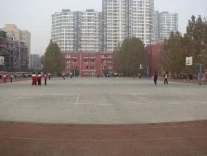 面氢考视土积为2400m2的全塑胶操场,有4条200米跑道和2个篮球场,1个排球场,并设有多种体育器械,。可供师生开展多种形体训练及健身活动。