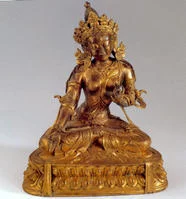 藏族菩萨鎏金铜像是藏族白度母鎏金铜像,收藏于上海博物馆。