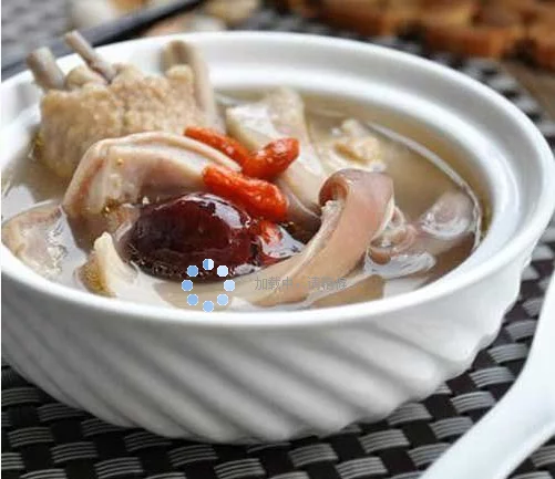 8.继续煲炖约半个钟头后,将浸泡过的枸杞放入搅匀大火煮3-5分钟,汤煲内添加适量精盐,少许胡椒粉调味即可熄火;
