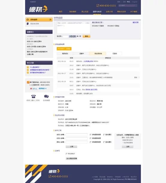 根据客户输入的快递号或物流单号,系统将会显示出货物的相关信息内容。