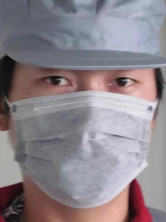 7,均匀的吸一口气,看看口罩于面部交接部分有没有进入空气,进入的话,可以感觉到面部于口罩相交处有思思凉意。