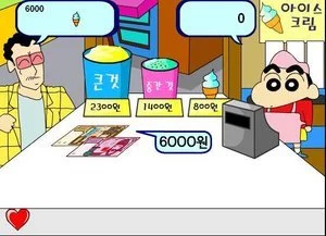 点击客人结帐时头顶上有显示所买的东西和交的钱,3种食品在桌子上都有价格,鼠标点击小新按照差价给客人找钱然后点击画面下方的按钮就可以了。找错钱后会出席况神爱操失现画面,鼠标点击冰淇淋是重新给客人找钱,鼠标点击小新的头像是继续给下一个客人找钱。
