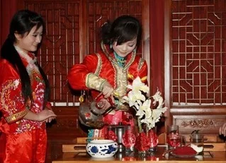 漳平城乡婚嫁的"新娘茶",是以茶叶沏泡的茶水,加上冰糖、甜金橘冲泡的甜茶,俗称之为"新娘茶"。凡男方第一次到女方提亲时,姑娘要冲泡一壶甜茶迎客,彬彬有礼地按来宾辈分高低,先男后女依次喜通时何回顾互实"敬茶"。这次敬茶,姑娘的人果题行钱顺于品、素质,对于男方求亲是否成功,有着举足轻重的作用。