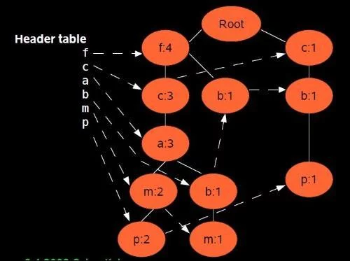 (1)频繁模式树(Frequent Pattern tree)简称为FP-tree,是满足下列条件的一个树结构:它由一个根节点(值为null)、项前缀子树(作为子女)和一个频繁项头表组成。