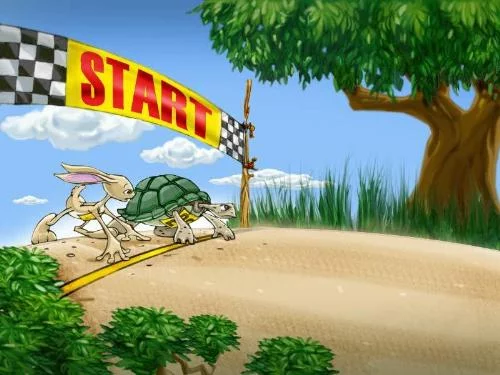 在很久以前,乌龟与兔子之间发生了争论,它们都说来自自己跑得比对方快。于是,它们决定通过比赛来一决雌雄。确定了路线之后它们就开始跑了起来。