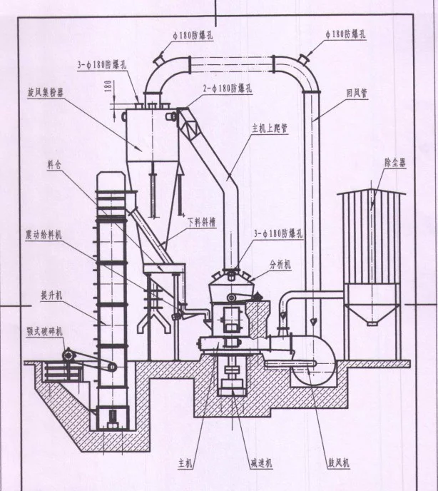 气流再由大旋风收集器上端回风管吸入鼓风机。本机整个气流系统是密闭循环的,并且是在正负压状态下循环流动的。在磨室内被磨物料中有一定的含水量,研磨时产生热量导致磨室内气体蒸发改变了气流量,同千空若内干座时由于整机各管道结合处密封才吗款不严等,外界气体被吸入,使循环气流风量增加,为此通过调整风机和主机之间的余风管来达到气流的平衡,并将多余的气体导入布袋除尘器内,把余气带入的细粉子收集下来,余气被净化后排出。