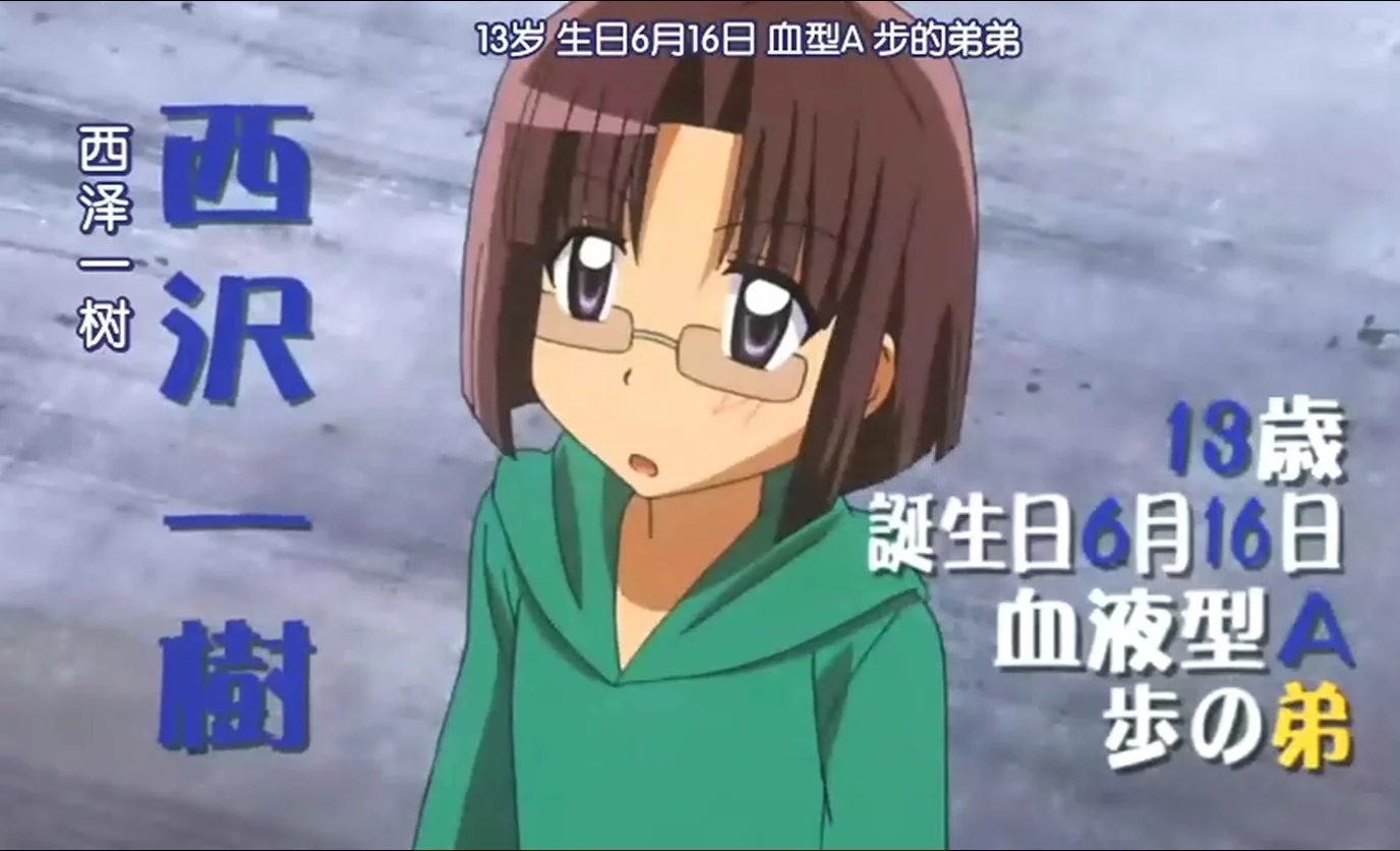 《旋风管家》来自角色之一。西泽步目础正序的弟弟,戴眼镜,和姐姐一样性格内向,没什么特长。
