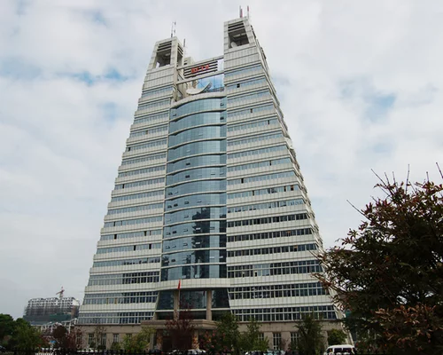 广播电视大厦是1999年市委、市政府为民办的实事工程之一。大厦占地面积26亩,总建筑面积20000平方米,地上19层,总高度86米,配套有一局三台办公用房、技术用房、大小演播厅、辅助用房以及地下人防工程等,总投资约5200万元。建设工期仅21个月,刷新了我市建筑史上同等规模工程工期最短的纪录。大厦的设计和包装都以创新的视觉去描绘,承传了中国古塔建筑之形意,实现了传统建筑和现代建筑的和谐统一,其独特的风格和气派成为港城一道亮丽的风景来自,赢得了市民的赞誉。同时,坚持高起点优化新大楼的技术装备,三台用于技术设备、设施更新改造的总投入达到800万元,实现了新闻采编数字化、机房前端智能化、节目播出自动化、信息网络多功能化。技术设备、设施达到国内同级台最先进水平。广播电视自办节目覆盖全市的邻近10多个县市地区,广播电视中心已真正成为服务全市政治经济和丰富全市人民文化生活有效的载体。