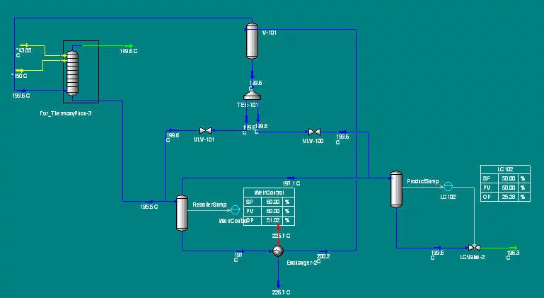 任意塔的计算:我们以前接触的软件中所有分馏塔都是软件商提供了一个最全的塔,然后让用户自己选择保留部分。试问,若用户有一个塔,其上部分为吸收-解析塔,下部分为提馏塔,这种塔该如何计算呢?HYSYS 就可以。由于采用了面向目标的编程工具,塔板、重沸器、泵、回流罐等等都是相互独立的目标。人们可以任意组合这种目标,而完成各种各样的任意塔,十分方便。